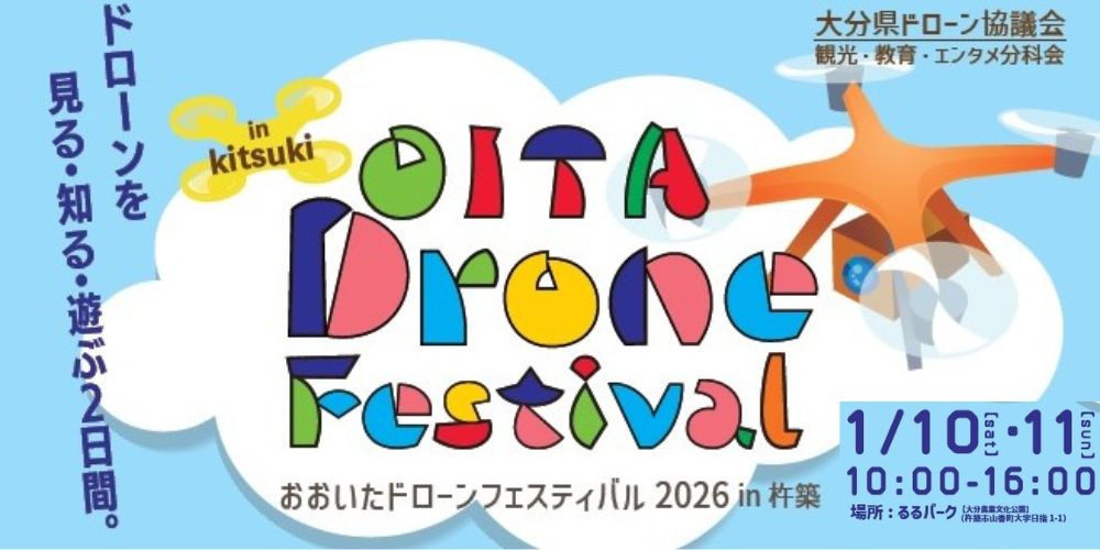 HOME > お知らせ > お知らせ 「おおいたドローンフェスティバル2026 in 杵築」のお知らせ 2025年12月24日 2026年1月10日(土)・11日(日)に「おおいたドローンフェスティバル2026 in 杵築」がるるパークで開催されます。詳細はこちら(外部HP)をごらんください。 Twitter Share Pocket Hatena Pinterest LINE -お知らせ