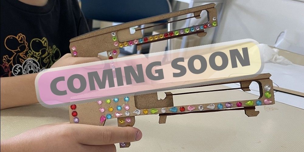 レーザーカッターでカットされた木材を組み合わせてゴムでっぽうを作ります。親子でご参加ください。